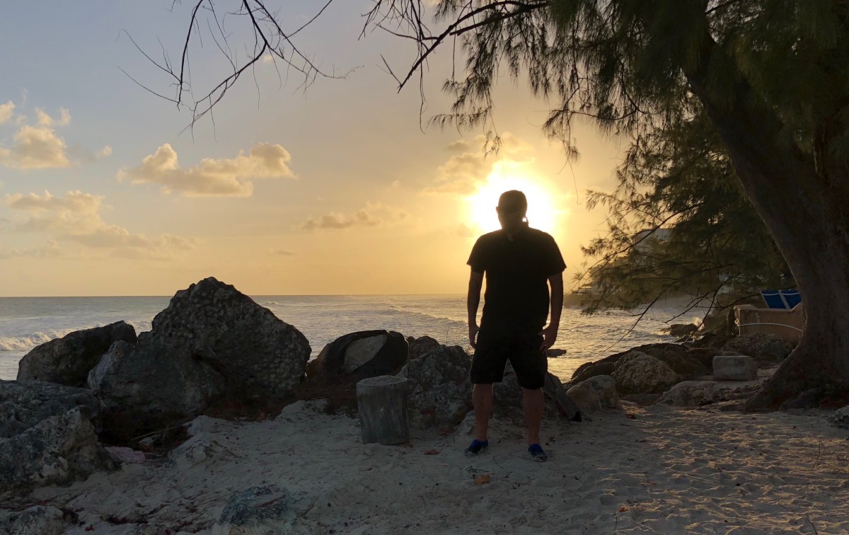 Me enjoying the beautiful sunset on Dover beach, Barbados, April 2018