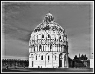 The Pisa Baptistry of St. John (Italian: Battistero di San Giovanni) is a Roman Catholic ecclesiastical building in Pisa, Italy. Construction started in 1152 to replace an older baptistry, and when it was completed in 1363, it became the second building, in chronological order, in the Piazza dei Miracoli, near the Duomo di Pisa and the cathedral’s free-standing campanile, the famous Leaning Tower of Pisa. The baptistry was designed by Diotisalvi, whose signature can be read on two pillars inside the building, with the date 1153.[1]