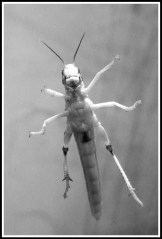 photo of a stick insect stuck to the glass smiling straight into the camera